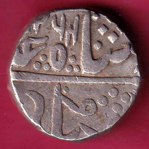 INDORE STATE SUN FACE INO SHAH ALAM II MALHAR RAO ONE RUPEE SILVER :- @HUB1363