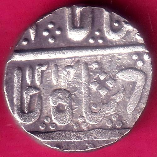 INDORE STATE SUN FACE INO SHAH ALAM II MALHAR RAO WITH FULL DATE "1214" AND FULL SUN "Malharnagar Mint"ONE RUPEE SILVER COIN–@HUB5932