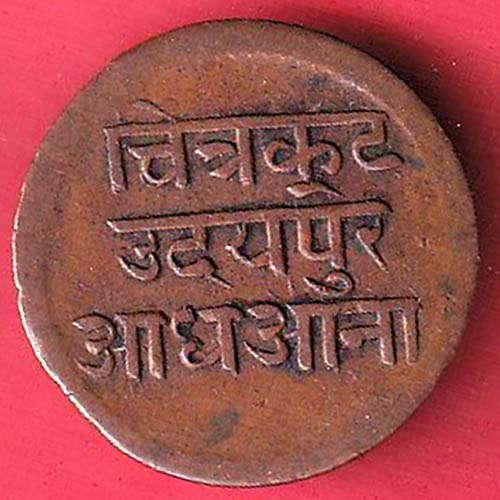 Mewar State Chitrakut Udaipur Dosti Londhon HALF Anna copper coin :- OO3364