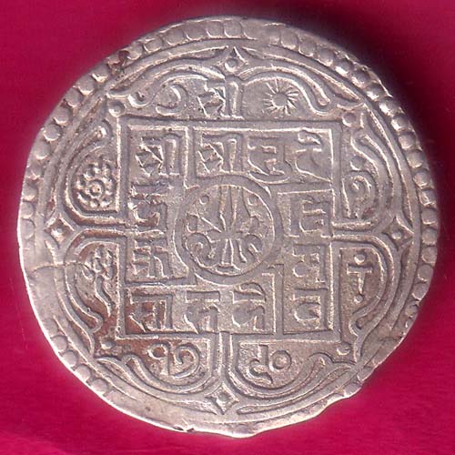 NEPAL RAJENDRA BIR BIKRAM ONE MOHAR RARE SILVER COIN–@HUB3346