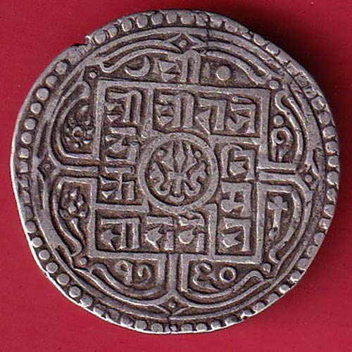 Nepal surendra bir bikram one mohur silver coin –oo3598