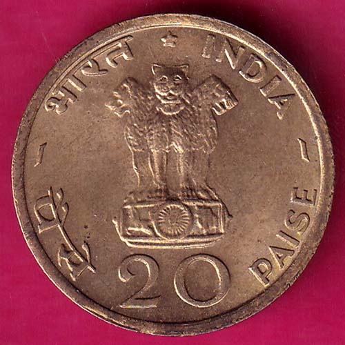 REPUBLIC INDIA 20 PAISA 1970 FOOD FOR ALL@hub5082