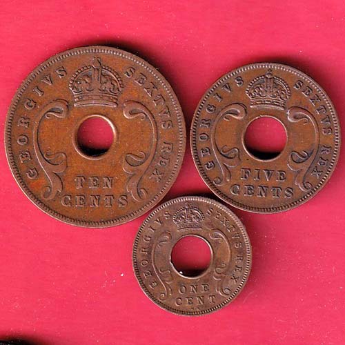 Set : East Africa 1950 Ten cent, 1949 five cent, 1951 one cent – oo5622