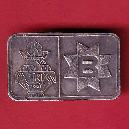 SILVER BAR: Weight – 10.75 gm: “KALASH WITH SWASTIKA MARK”:- OO3908