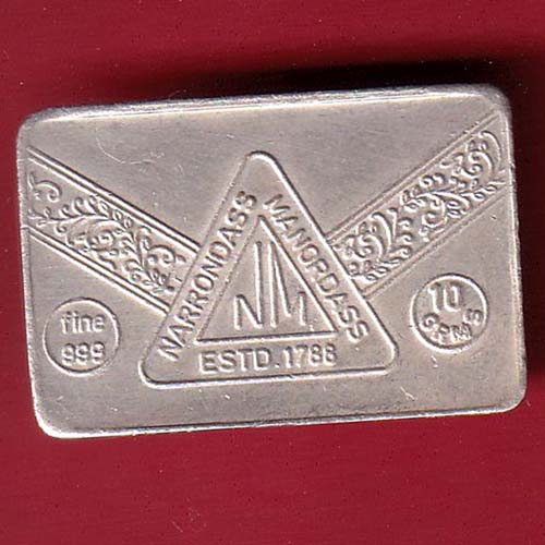 silver bar: Weight – 9.97 gm: narrondass manordass estd:1788 –oo3615
