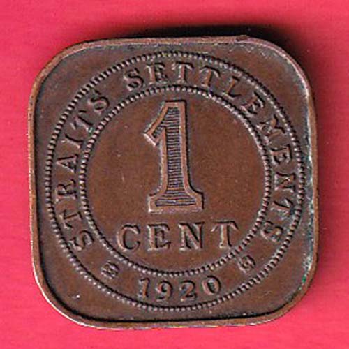 Straits Settlement George V 1920 1 Cent Coin:- OO4441