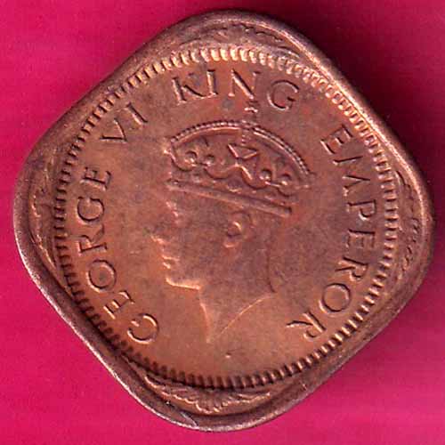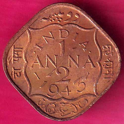 UNC british india 1/2 anna 1943 king george vi scarce coin :- OO1020