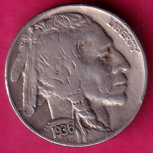 United States 1936 "Buffalo Nickel" flat ground 5 Cents –@HUB5133